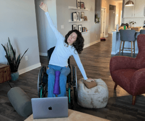 We offer classes six days a week and 24/7 digital access through our website at no cost to the participant. Our live adaptive yoga classes are 100% online and held on the Zoom platform. Classes labeled “Adaptive” are taught from a chair throughout the practice. Classes labeled “Ambulatory” are taught either from a chair or from the floor. Students may attend any class they wish! Our MBS-trained teachers will meet you where you are. Try out a class or two! Meet new friends from around the world and start living better in the body you have. Browse Class Schedule