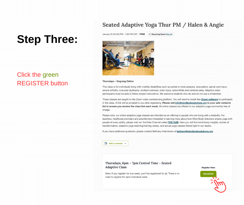 - Once you’ve registered for the class(es) you wish to attend you will receive a confirmation email – one for each class you registered for.