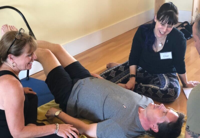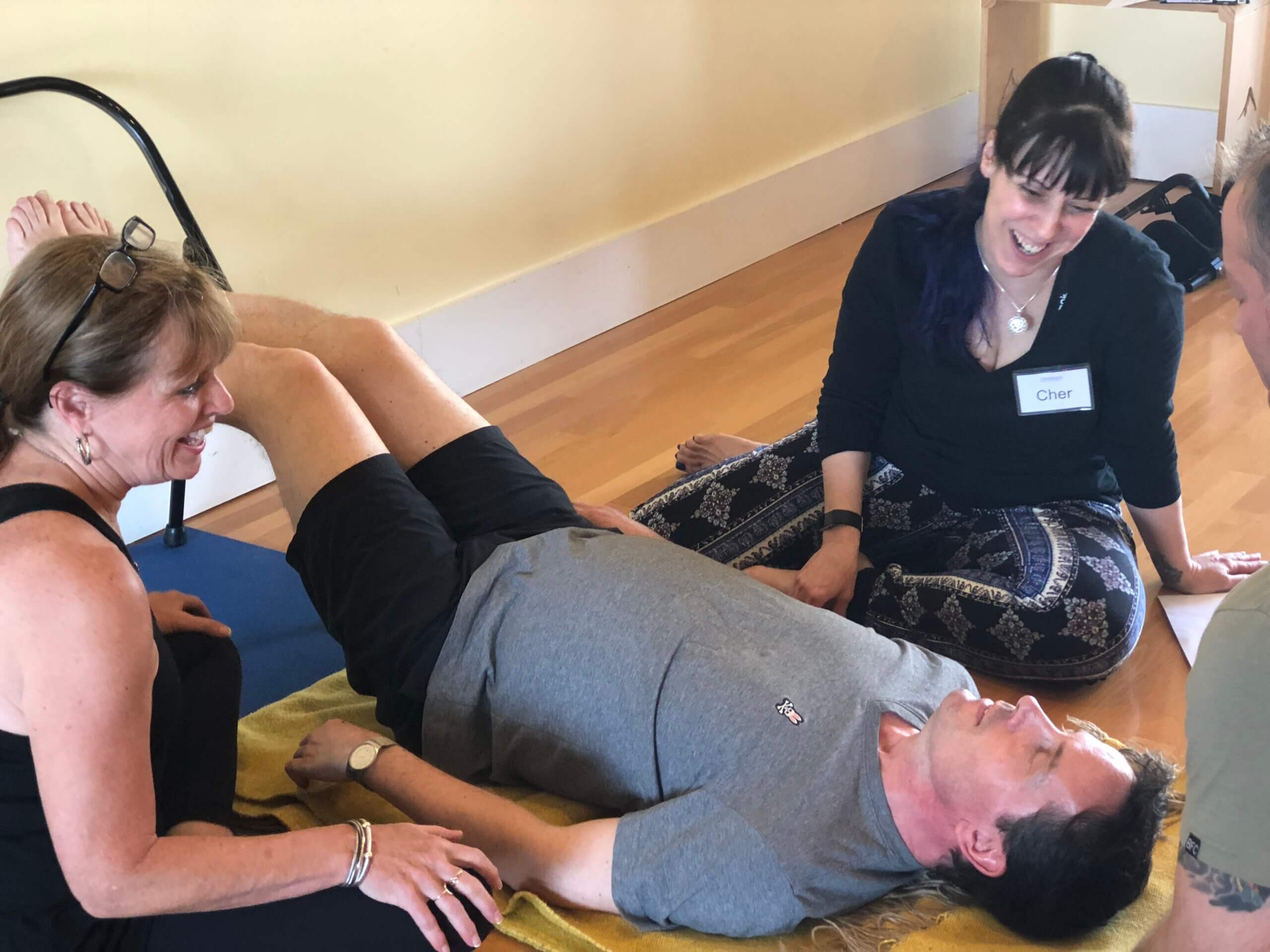 - Lie flat and ask a partner to carefully lift up the ankles. Allow the legs to be completely heavy. As the weight of legs is supported, feel the buoyancy and expansion of the body and awareness down through the feet/sitting bones and up through the top of the head.