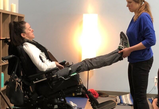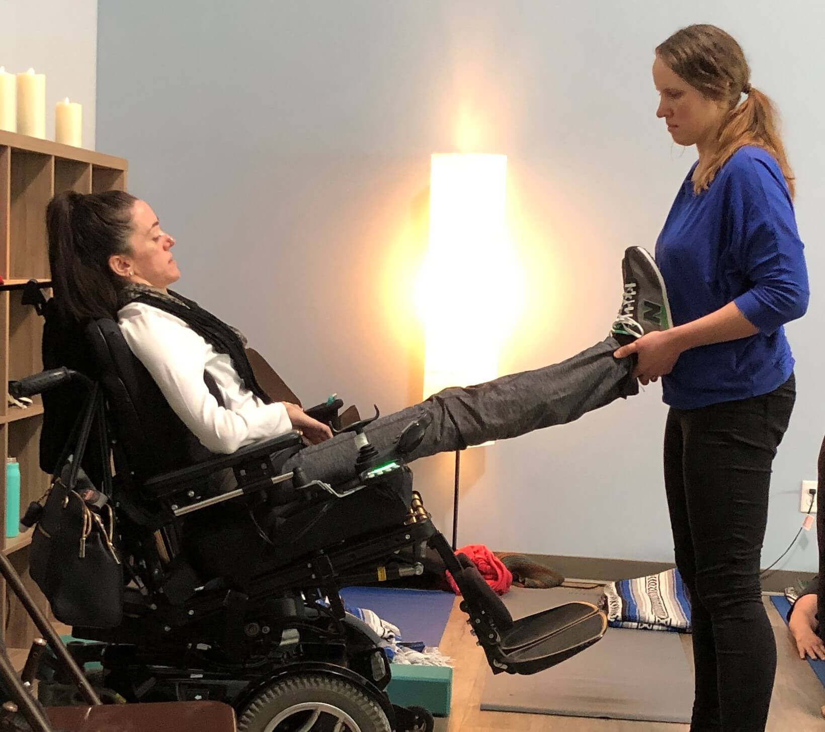 Without the same accesses as traditional students, adaptive students become especially insightful in their practice. They learn that anchoring a pose creates space, offering relief and the free flow of energy through the body. This heightened awareness allows them to recognize the subtleties of the outer and especially the inner grounding and activation of asana.